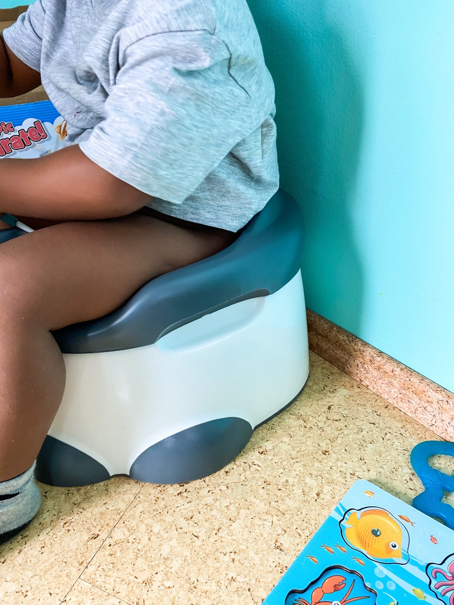 Mein Sohn, Rey Joel, möchte immer wieder die Windeln ausziehen und auf die Toilette sitzen. Da er aber ziemlich schwer ist und er sich nicht alleine traut auf die Toilette zu steigen, habe ich mich für das Töpfchen Step’n Potty von Bumbo entschieden.