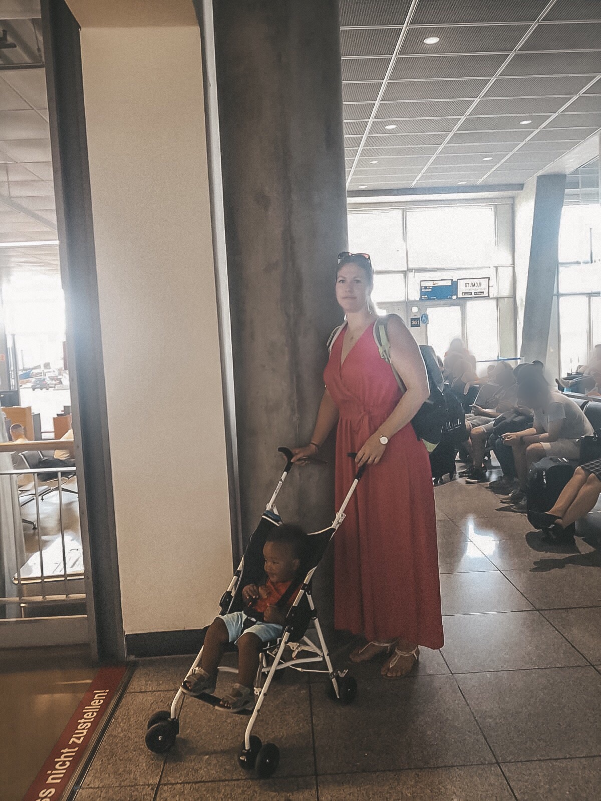 Da unser kleiner ein sehr aufgewecktes Kind ist, wollte ich gut vorbereitet am Flughafen sein. Deshalb habe ich mich vorab schon ein wenig über den Transport unseres Buggys informiert, Sitzen während des Fliegens usw.