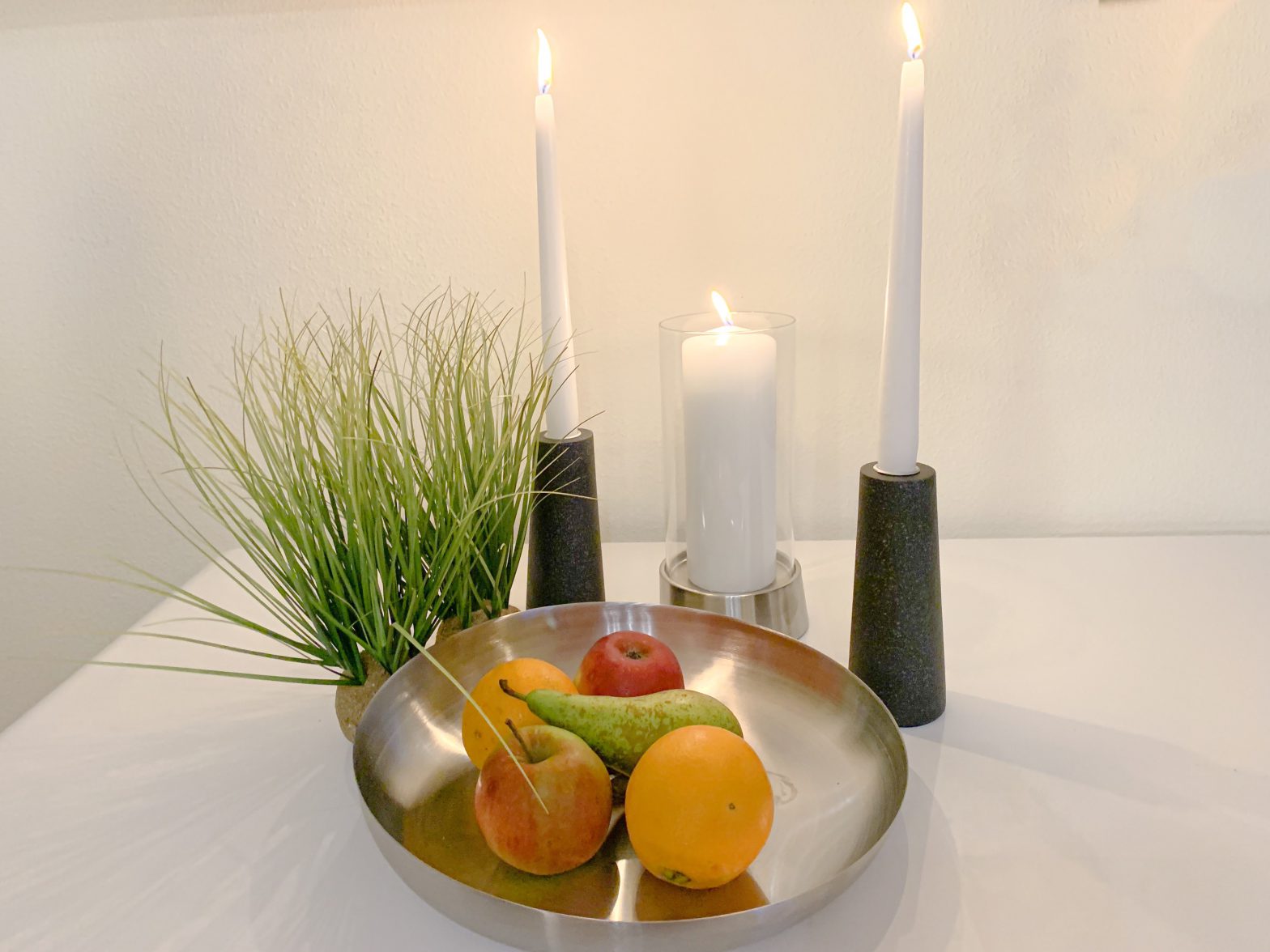 Die Obstschale aus Edelstahl wirkt aboslut zeitlos und ist definitv mein Geschmack. Sie wirkt sehr stabil und passt absolut in mein schwarz-weißes Wohnzimmer oder auch in meine grau, mintgrüne Küche. Der Boden hat eine „rutschfeste“ Schicht.